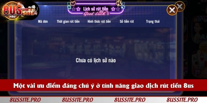 Việc giao dịch rút tiền 8us được coi là cơ sở giúp người chơi đánh giá chất lượng một nền tảng. Tại cổng game, nhiều khách hàng cảm thấy hài lòng với quy trình đổi thưởng khi sở hữu nhiều ưu điểm:
